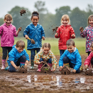 One evening, a man was walking home after work. On the roadside, he saw a group of children playing. They were building small houses with clay. Some made little doors, some placed pebbles for windows, and some even decorated the roof with leaves. The children were excited, taking their work as if they were building a real village.