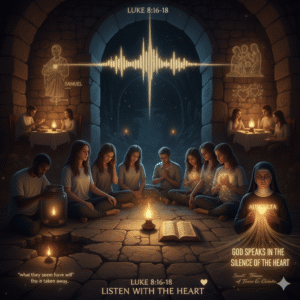 Jesus connects listening with light. He says no one lights a lamp and hides it under a jar. The lamp must be placed where it can shine. In the same way, when we listen carefully to God’s word, it becomes a lamp within us. That light naturally shines in our speech, our actions, and our relationships. But if we only hear without listening, the lamp remains hidden and our life remains unchanged.