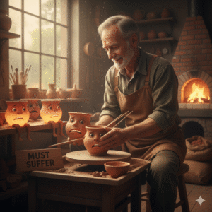 There was a potter in a town who was a kind-hearted man and loved his pots so much that he used to speak to them. One day, while he was arranging the pots for the fire, a small pot began to cry loudly requesting him not do not put into the fire.  The small pot said “I cannot bear  the heat and the heat will destroy me.” The potter bent down gently and replied, “My dear pot, unless I put you in the fire, you will remain soft and useless. Only the fire can make you strong enough to serve others and carry water.” The little pot trembled and feared the fire, but it obeyed. When it came out, it shone brightly, firm and ready to serve.